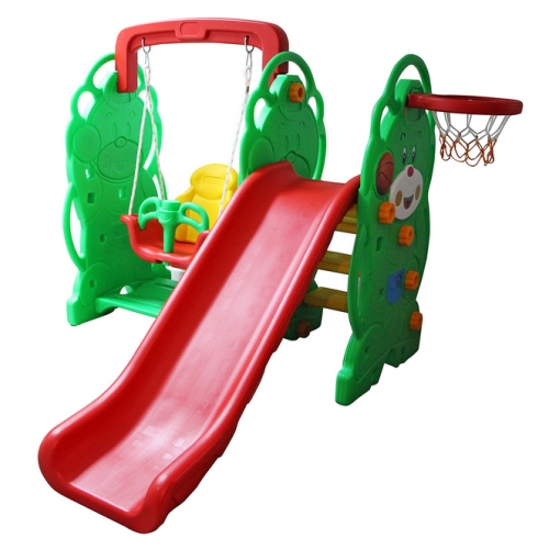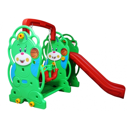Рады предложить вам напрокат игровой комплекс с горкой, баскетбольным кольцом и качелями Sundays! Игровой комплекс выполнен из качественного «дутого» пластика, без острых и твердых углов, в виде улыбающихся мишек.