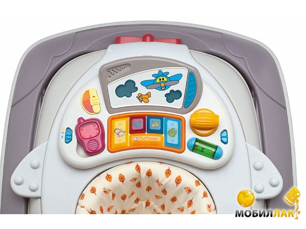 Съемная музыкальная панель оснащена различными светомузыкальными кнопками,телефоном, рычагом, и «крутелкой»- всем что очень нравится детям. Кроме того, в ходунках есть специальный отсек-слот с возможностью подключения Mp3-плеера или телефона, позволяющий добавить к уже имеющимся мелодиям, те мелодии и звуки, которые больше всего любит Ваш ребенок.