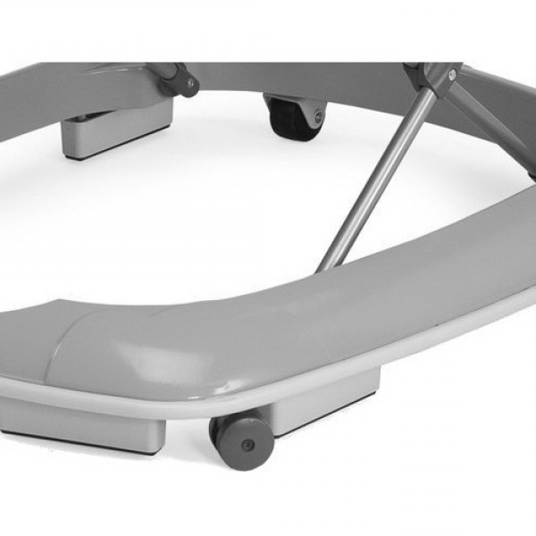 Ходунки оснащены 2 передними плавающими колесами, 2 задними фиксированными колесами и 6 стопорами для безопасности ребенка. По периметру ходунки оснащены резиновым бампером.