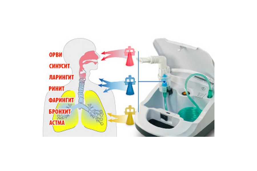 Важно! Прибор создает различные варианты аэрозолей с частичками нужной пользователю величины. Благодаря этому лекарственный препарат можно «направить» на необходимые участки дыхательных путей. Смена режима осуществляется установкой подходящего распылителя.