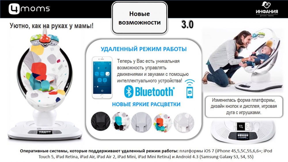 Обновленный дизайн и новые функциональные возможности качелей ( а это возможность управлять качелями дистанционно при помощи мобильного телефона) придутся по душе даже самым требовательным родителям! Проверьте и убедитесь в этом сами!
