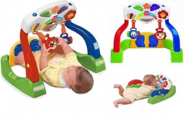 Развивающий комплекс Chicco «DUO» используется детишками с 3-х месячного возраста. Он может использоваться как лежа на спинке, так и лежа на животике.