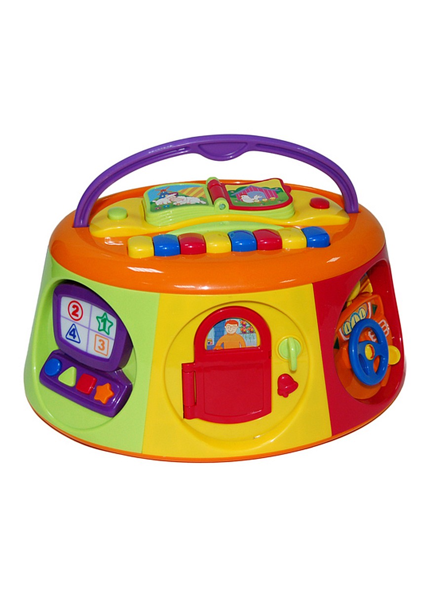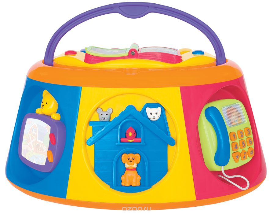 Содержит в себе большое количество всевозможных развлекательных полезных элементов, развивающих моторику, воображение и слух ребенка!