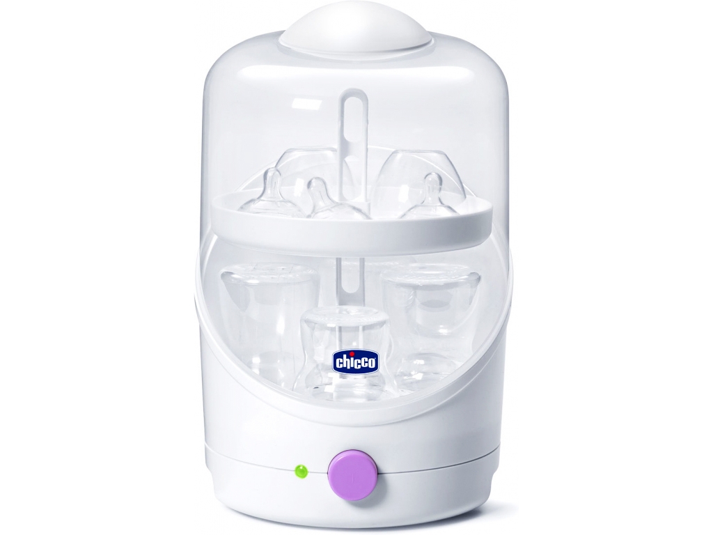 Электронный паровой стерилизатор от компании Chicco легко и эффективно поможет вам продезинфицировать бутылочку, соску, молокоотсос и прочие принадлежности для кормления Вашего ребенка.Дезинфекция таких аксессуаров просто необходима для самочувствия ребенка, т.к. уничтожает различные вирусы, микробы и бактерии, используя силу горячего пара.