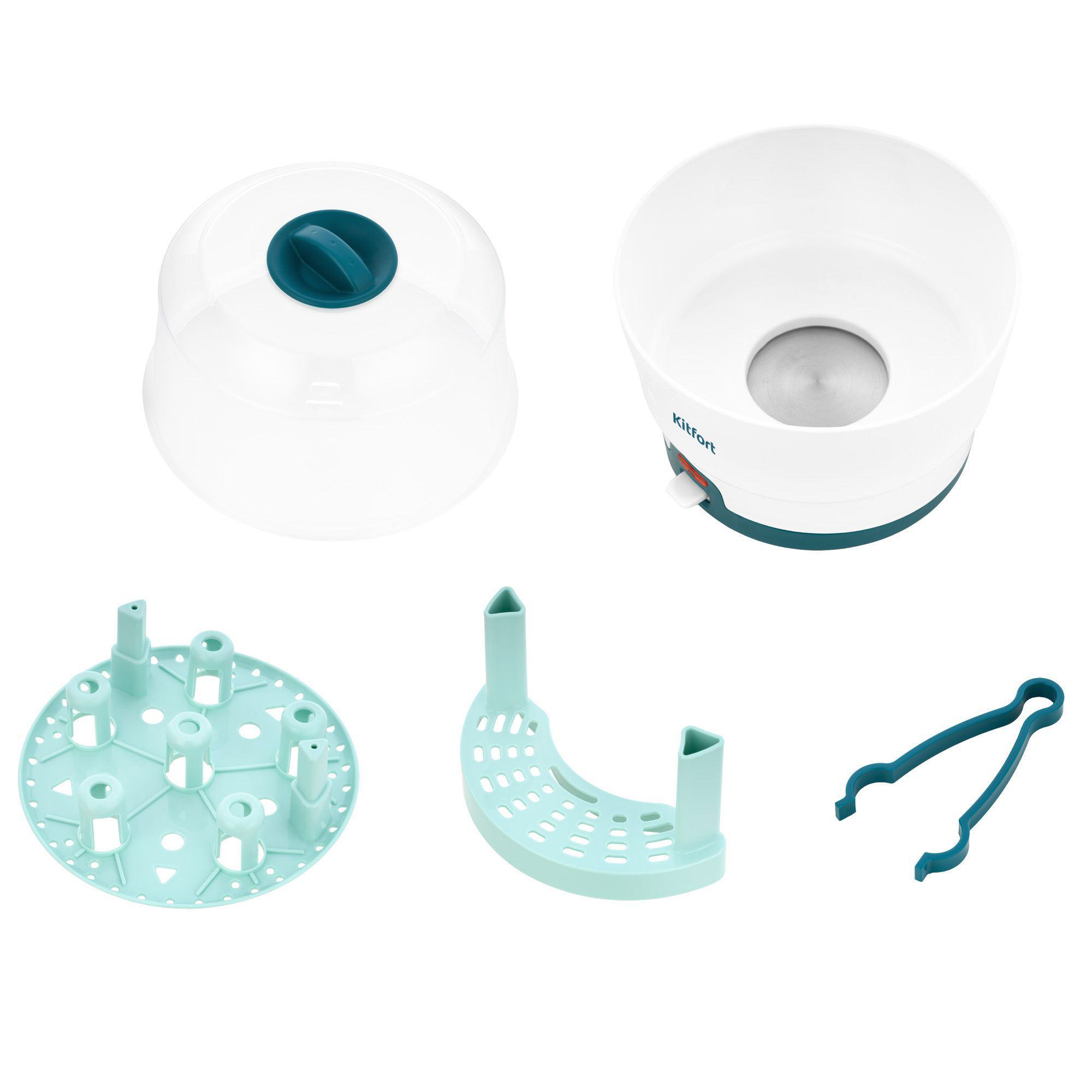 Стерилизатор Kitfort КТ-2З15 позволяет простерилизовать бутылочки для детского питания и другие подходящие по размеру аксессуары. Прибор оснащён держателем бутылочек с полкой для сосок и отключается автоматически по окончании процесса.